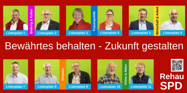 Unter dem Motto „Bewährtes behalten - Zukunft gestalten“ nominierte die Rehauer SPD ihre Kandidatinnen und Kandidaten für die Stadtratswahl 2026. „Der Slogan spiegelt am besten unsere Ausgangssituation wieder“, so Ortsvereinsvorsitzender Ulrich Scharfenberg, „wir stellen keinen Bürgermeisterkandidaten, da die Arbeit von Bürgermeister Abraham aus unserer Sicht weitgehend gut ist. Aber auch ohne eigenen Bürgermeisterkandidaten werden wir mit unserer erfolgreichen Stadtratsarbeit weiterhin die Zukunft gestalten.“
